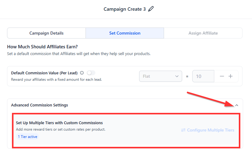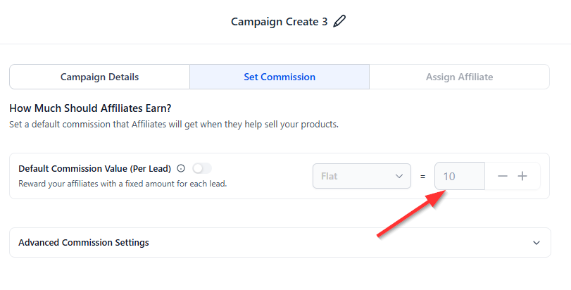 - Under the "Commissions" tab, toggle on the Pay-Per-Lead option.