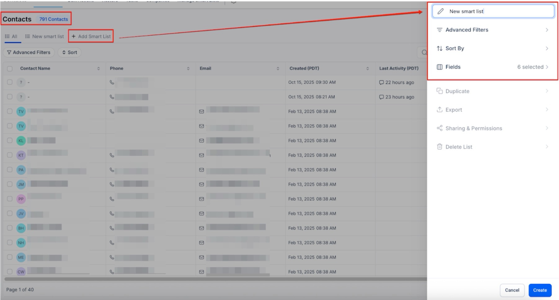 4. Create and Use Smart Lists: Create smart lists for faster access. To create a smart list, you can also apply the filters.