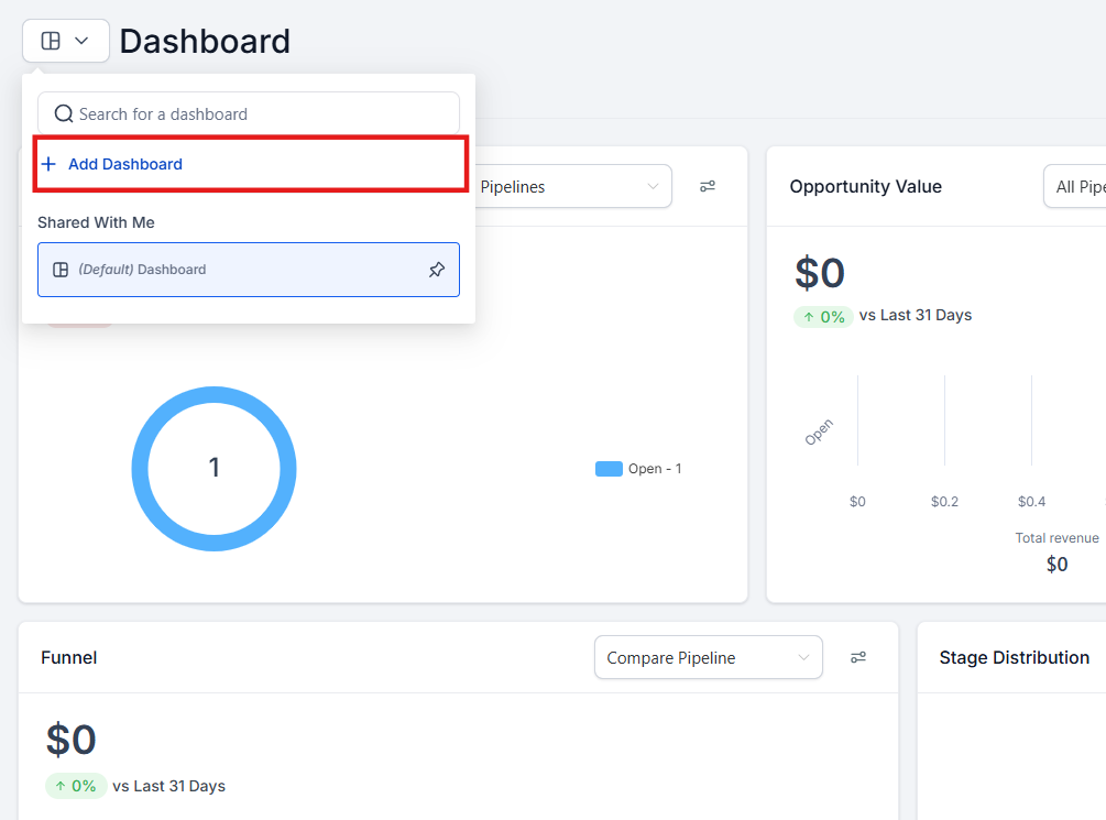 You can create a new dashboard if you want, simply click on the create new dashboard option.