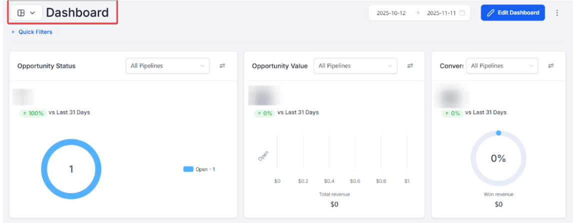The Instant Dashboard Insights feature allows you to add relevant dashboard widgets directly from key pages like Opportunities, Appointment Reports, and Call Reports without leaving the page. This eliminates the need to navigate between different pages to view and analyze your data. With this, you can customize your dashboard on the spot, ensuring real-time tracking of your performance and better decision-making.