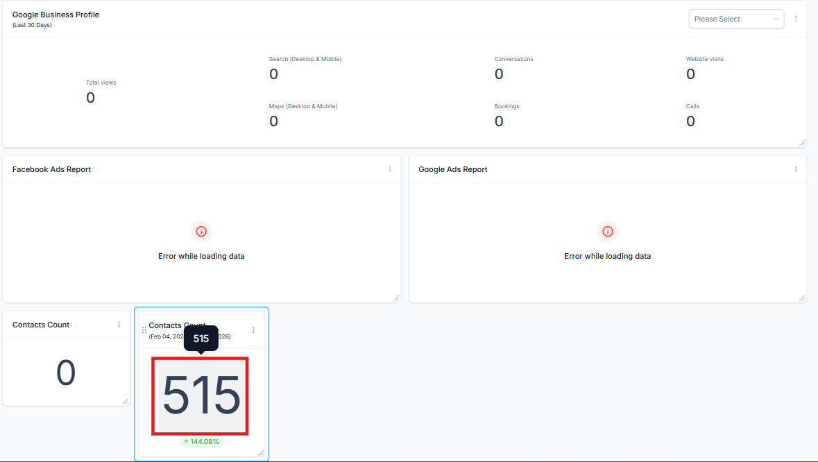 Currently, some dashboard insights may not support widgets dependent on third-party services like social media platforms. Focus on using native widgets for a seamless experience.