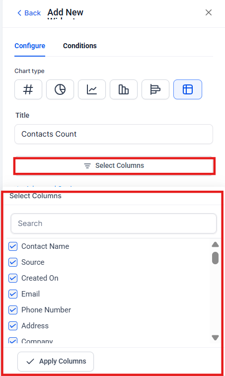 Setting Up a Table Chart Widget
