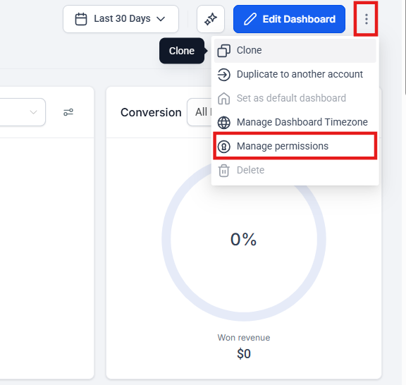 1. Navigate to dashboard settings: Click on the settings or permissions icon in your dashboard.