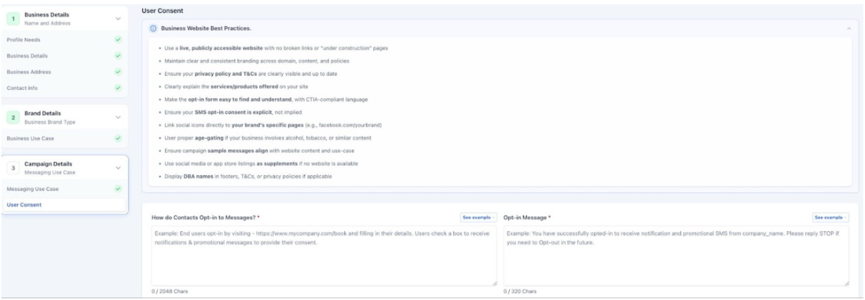 - Scalability: Easily scale your operations by creating multiple campaigns with different use cases under the same brand.
