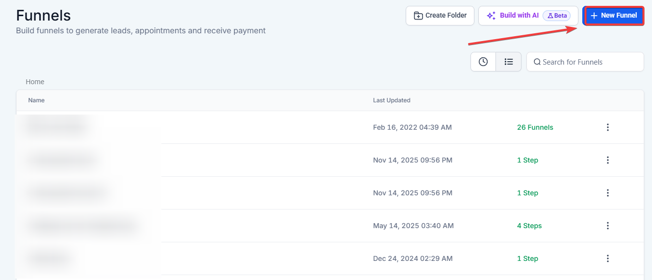 - Navigate to Marketing & Sales > Funnels & Pages and in the website or funnel builder, choose your funnel/website.
