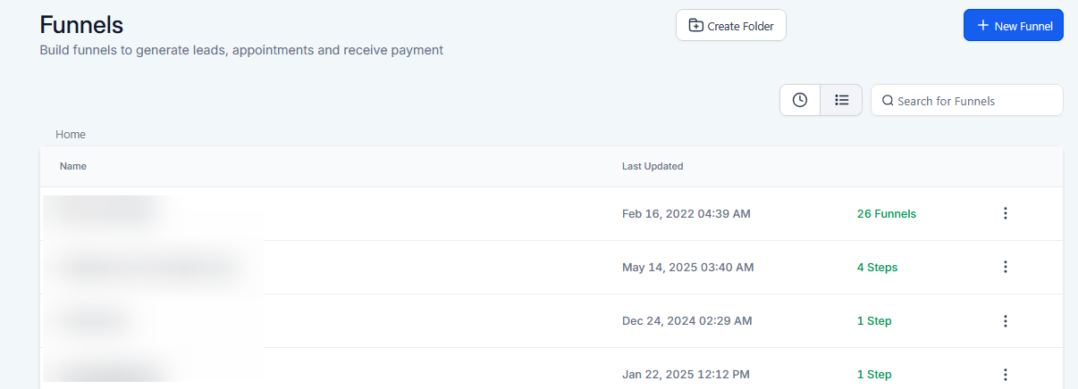 - From here, select Funnels or Websites and choose the funnel or website where you want to add the FAQ. For this guide lets pick funnels.