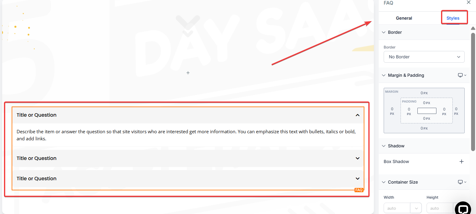 Q: Can I create an FAQ with custom styles?