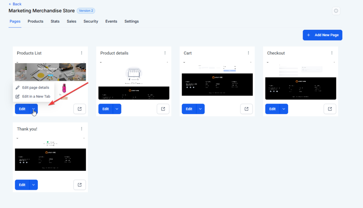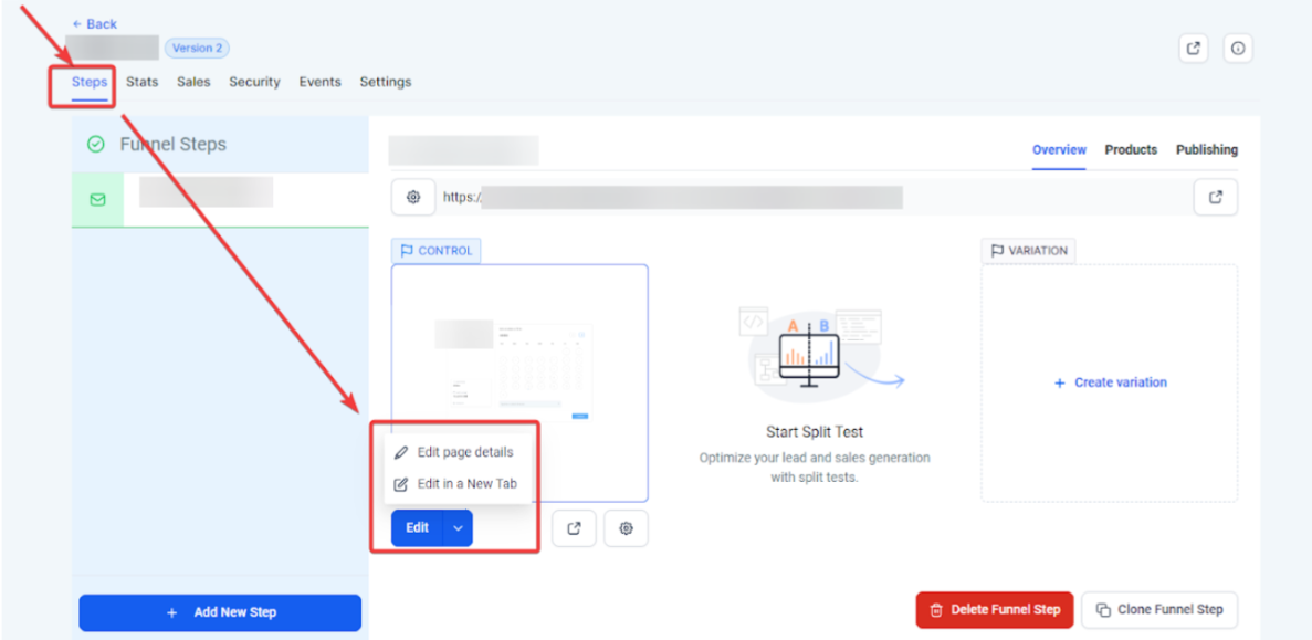 - Click on any funnel/website you want to edit and then within that funnel/website click on edit page details.
