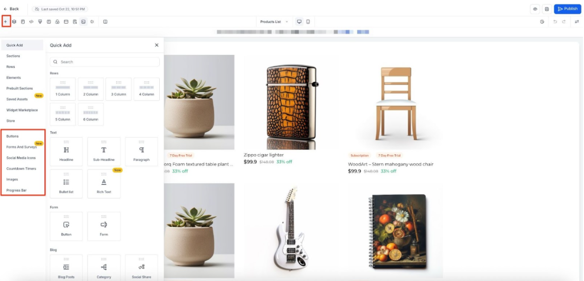Benefit: Streamlining the sales funnel with engaging elements and ready-made sections can lead to higher conversion rates and a smoother user experience.
