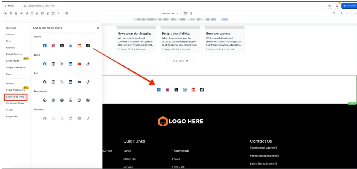 - Choose from icons for all major social media platforms including Facebook, Twitter, Instagram, LinkedIn, and more.