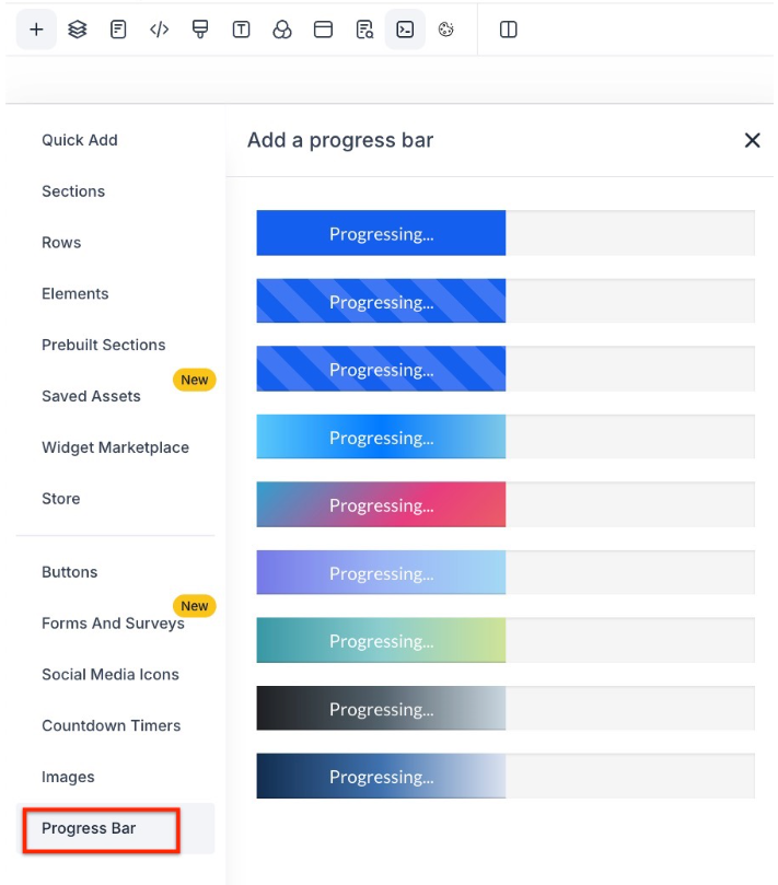 Enhance your website and funnel design process with the introduction of Prebuilt Elements in the Builder. These powerful design tools streamline your work, enabling you to create professional and functional web pages quickly and efficiently. The latest enhancements include prebuilt buttons, images, social media icons, progress bars, and pre-built sections all designed to elevate your website’s functionality and aesthetic appeal.