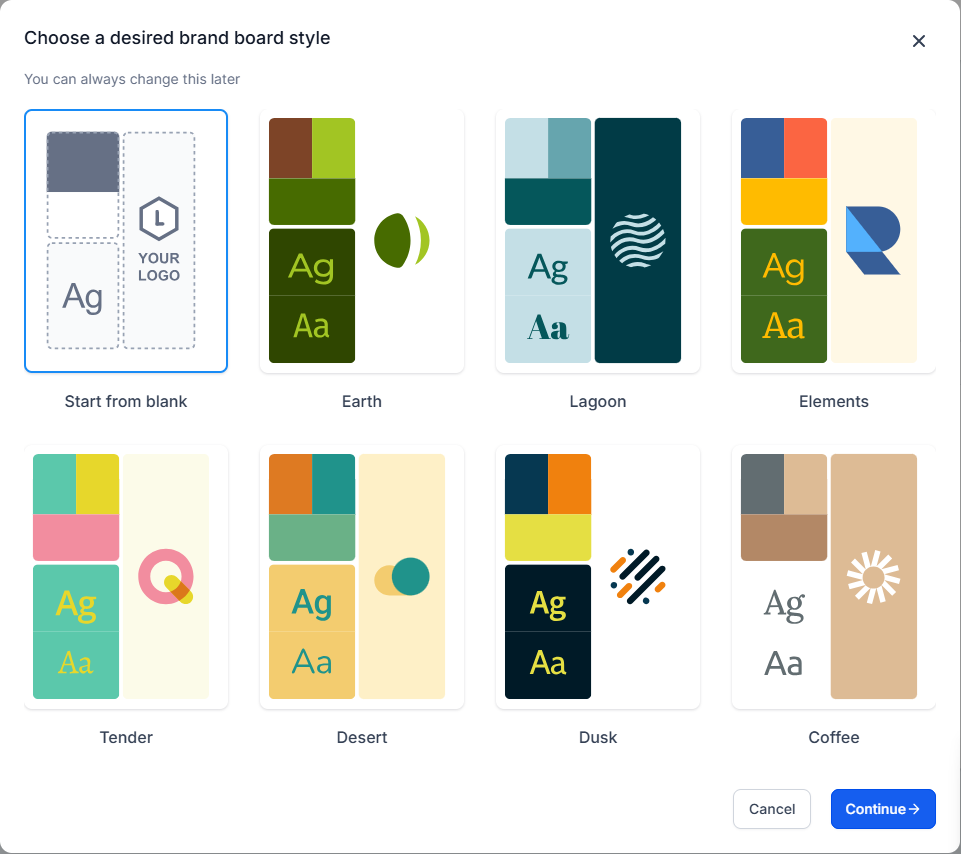 - Choose whether to start with a Template or a Blank Board. Click Continue.