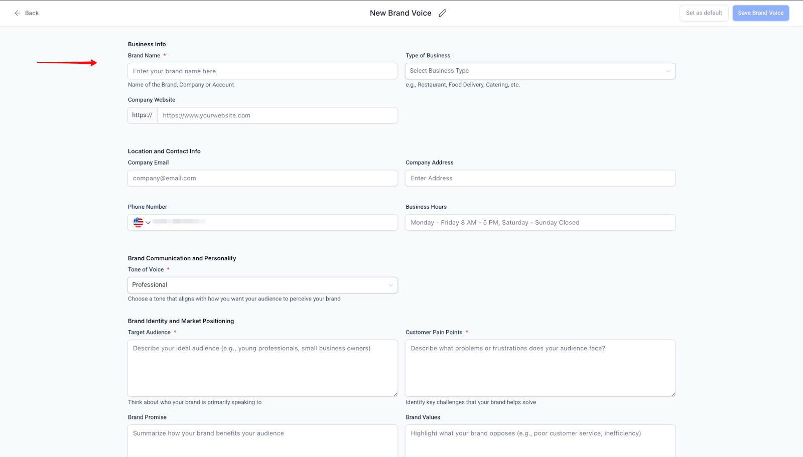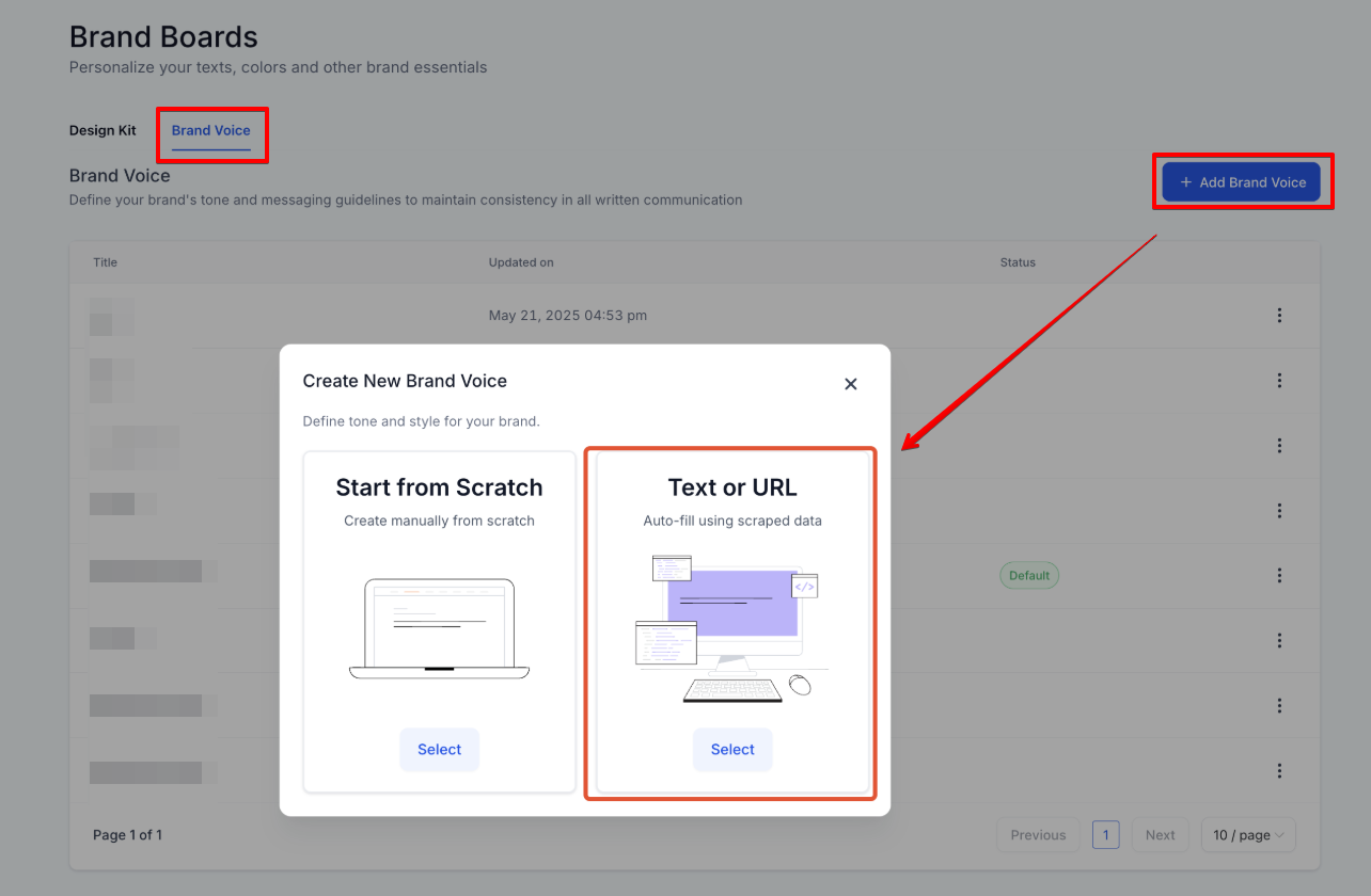 You can quickly generate a complete Brand Voice by simply entering a website URL or pasting your brand’s text. This feature eliminates the need for manual setup, allowing you to create a custom voice instantly, which is fully editable to align with your tone.