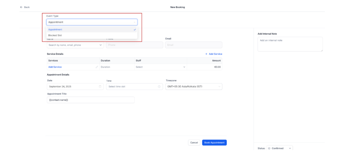 - This service and appointment management like duplicating appointments, adding blocked time slots from the service modal, and displaying booked resources for clearer scheduling. It also introduces new custom values, service booking price and meeting location for more personalized communications.