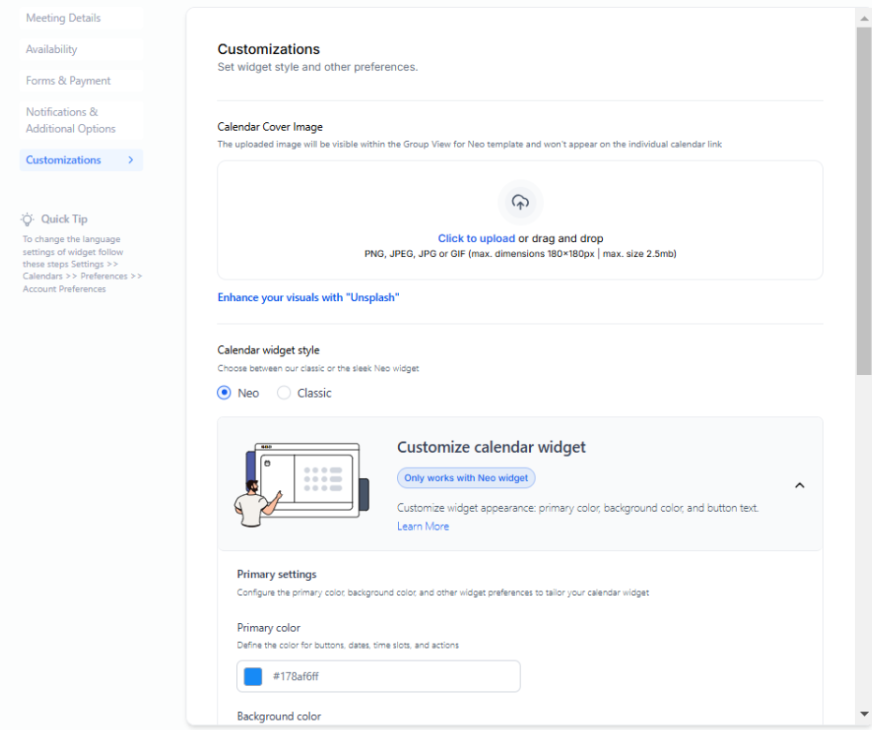- Choose between Neo or Classic styles for the booking widget.