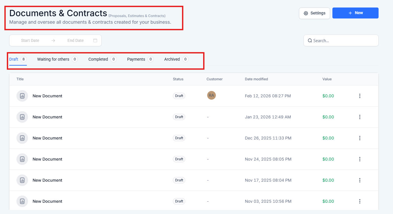 Answer: You can track the status of the document in the Documents and Contracts dashboard, where you’ll see if it’s been viewed or signed.