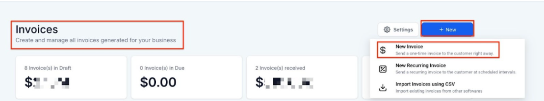 - Create an Invoice: Navigate to your invoicing section and create a new invoice.