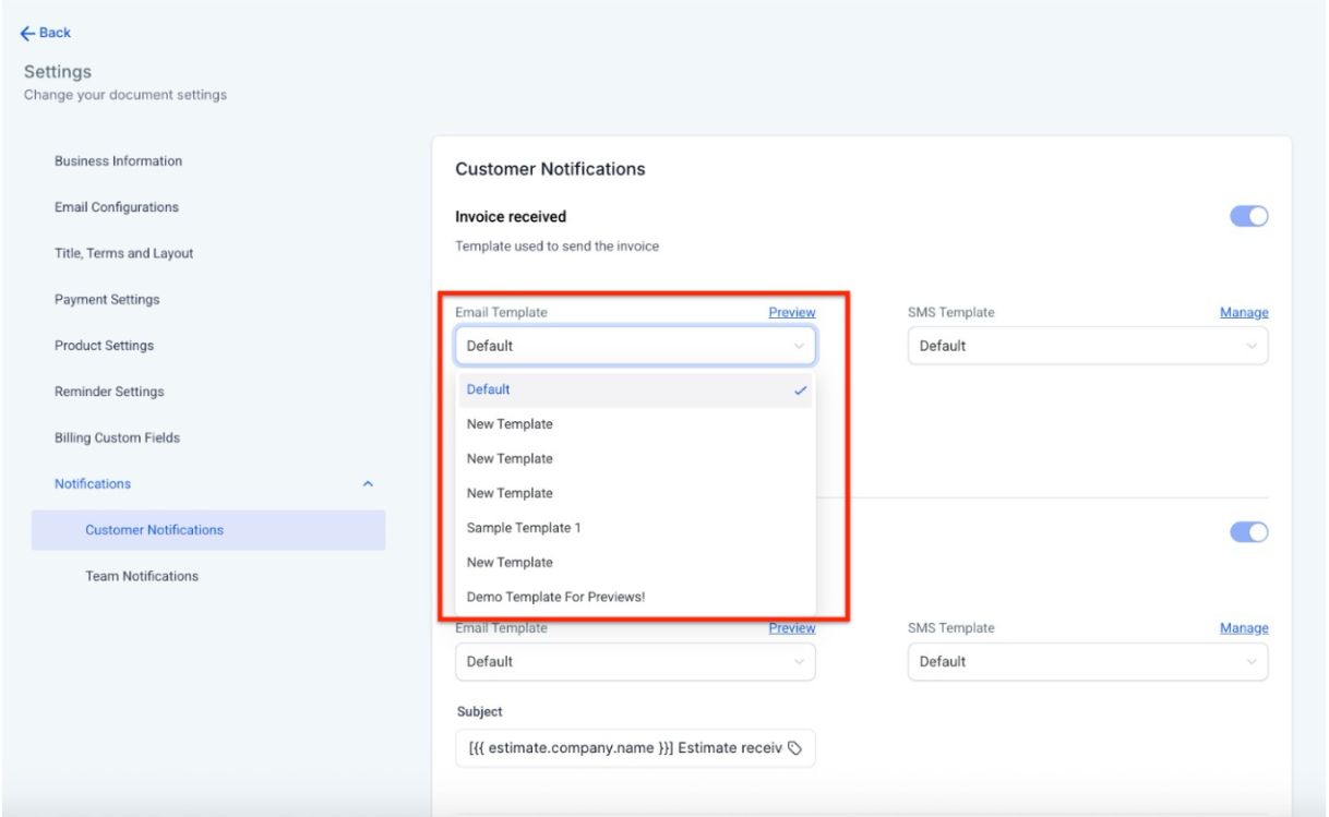 - Create new templates for scenarios like Invoice Payment Successful or Invoice Payment Failed.