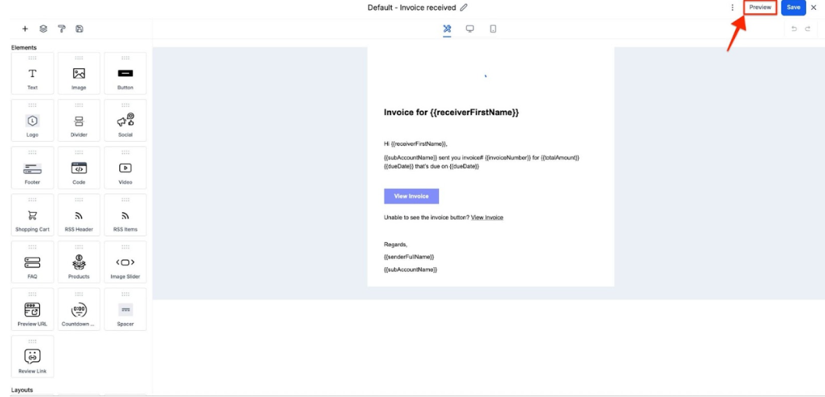 - Use the Preview button to check how the email will appear on different devices.