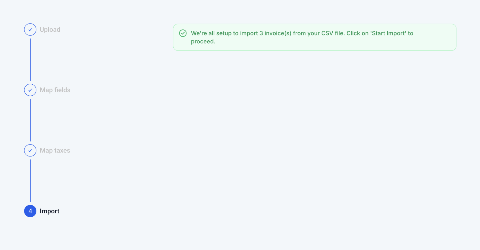 - Date Field & Tax Mapping: Automatically match columns in your CSV file to the invoice fields in your system.
