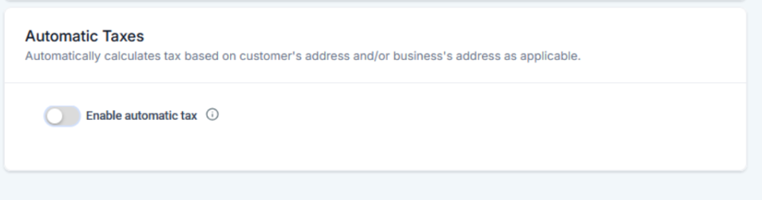 2. Toggle On Automatic Taxes: