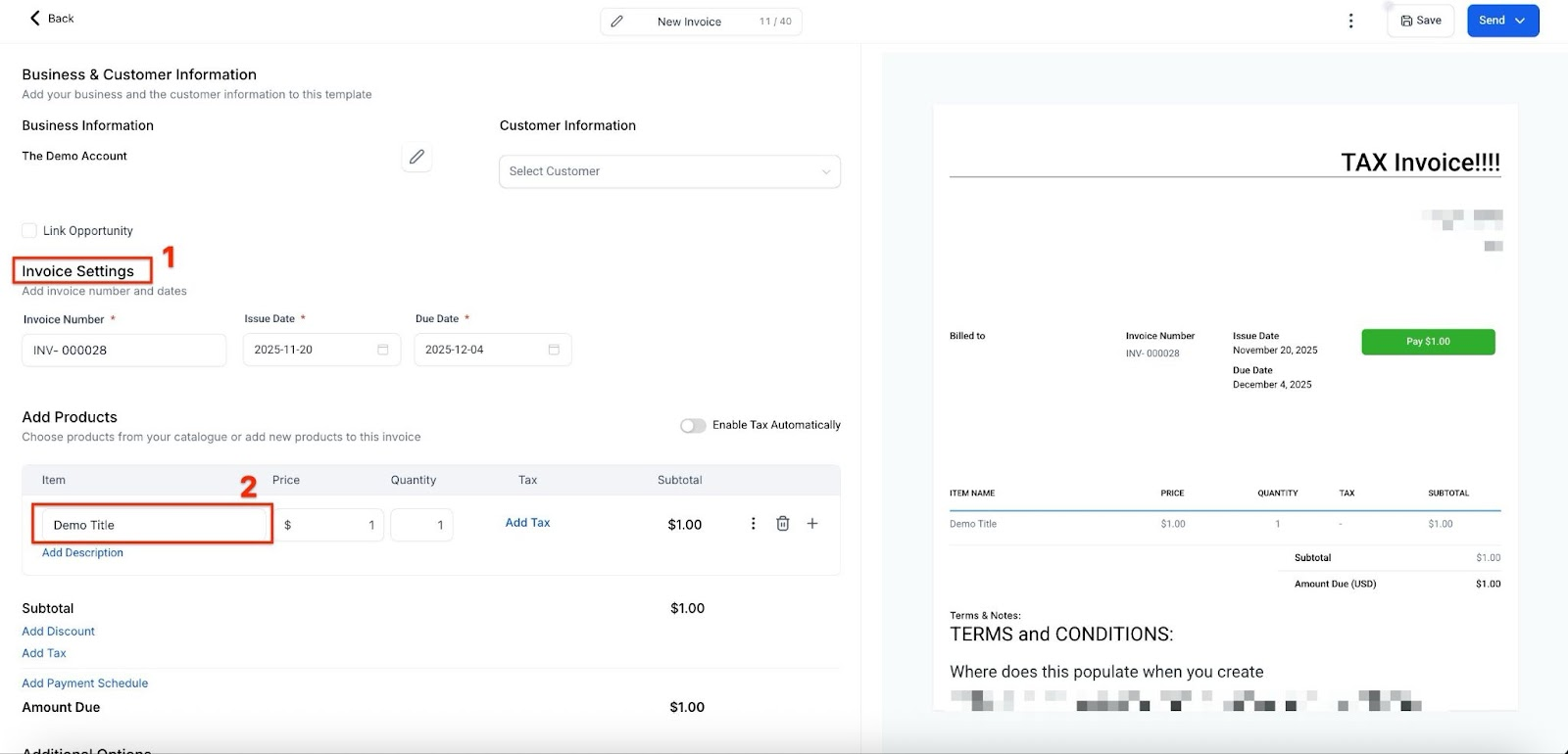 3. Creating an Invoice with Partial Payments: