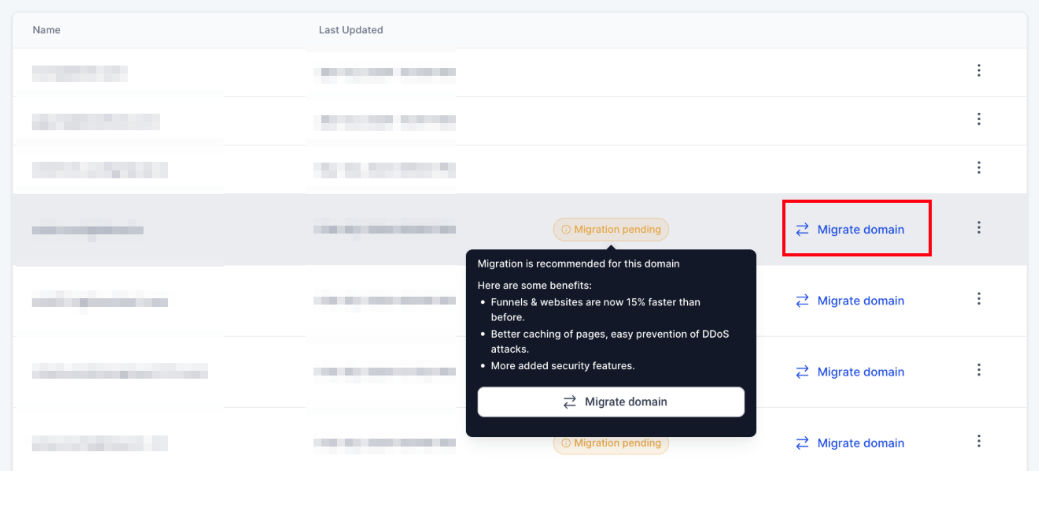 - Click the "Migrate Domain" button after going to Settings > Domains