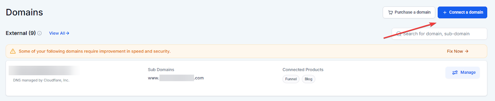 You’ll need to add your domain within your system to use it for funnels or websites.