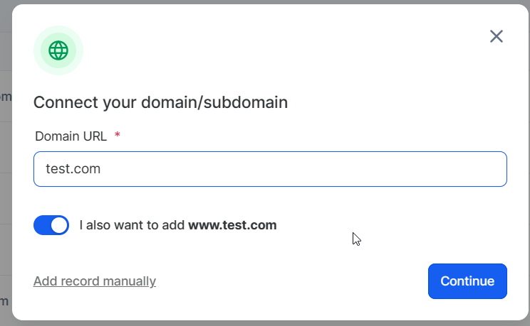 Manual addition of domains applies to you if your domain registrar is anyone except the two supported by Domain Connect (i.e., Cloudflare, and GoDaddy).