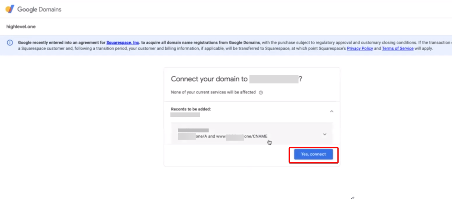 7- Finalize the connection, once authorized, close the domain provider’s tab and return to the Domain Connect interface.