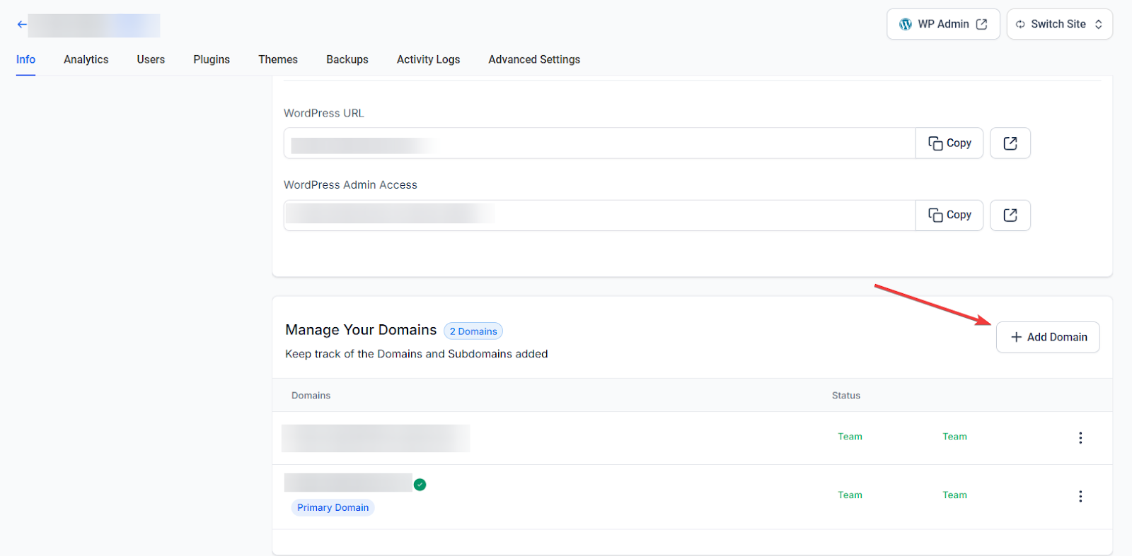 - Here, you’ll see a list of any Domains you already have, or you can add a new one.