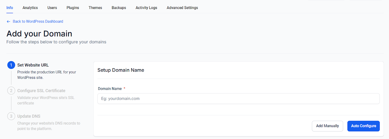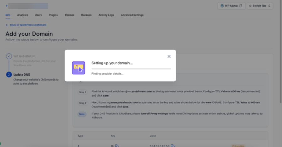 8- Manual DNS record addition remains an option if your domain provider is not supported.