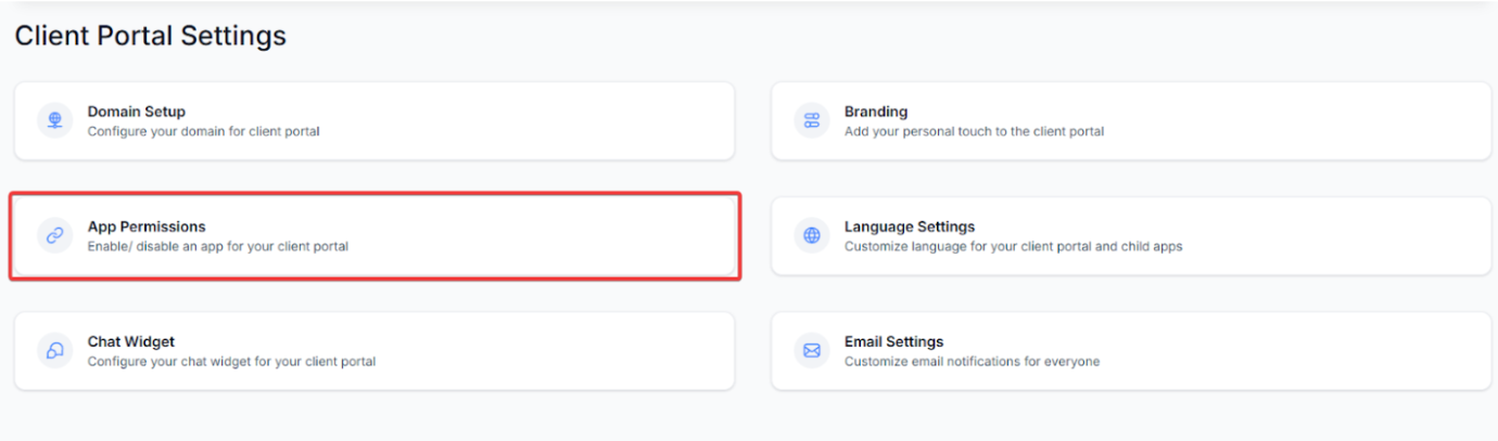 - Step 2: Select the App Permissions option, where you can view and manage all app permissions available within your portal.