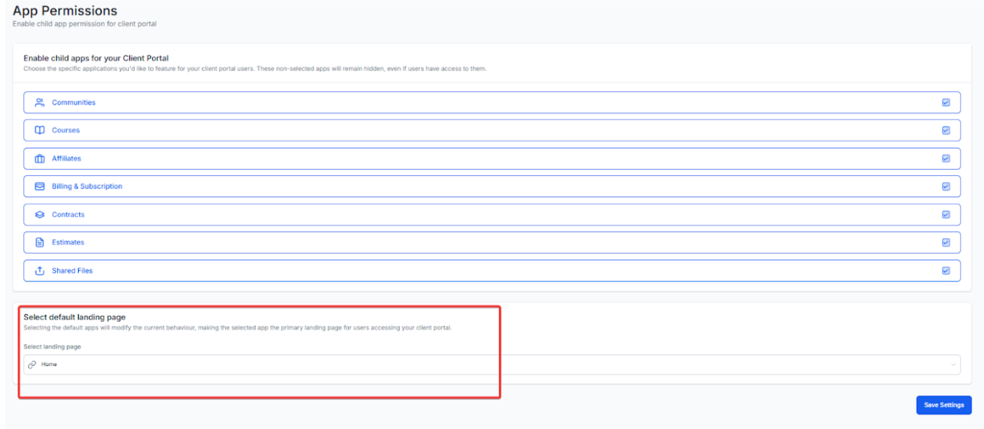 - Choose Your Preferred Page: Select the page you want users to see as soon as they log into the portal. This ensures a smooth experience by directing clients to the most important part of your platform.