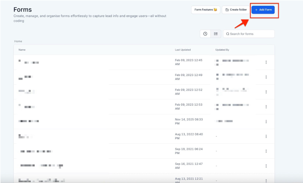 1. Access Form or Survey Builder: Users access the form/survey builder by going into the Marketing & Sales > Funnels & Pages tab located to the left in Mastermind Platform. Accessing Forms/Surveys at the top and creating or editing a form/survey.