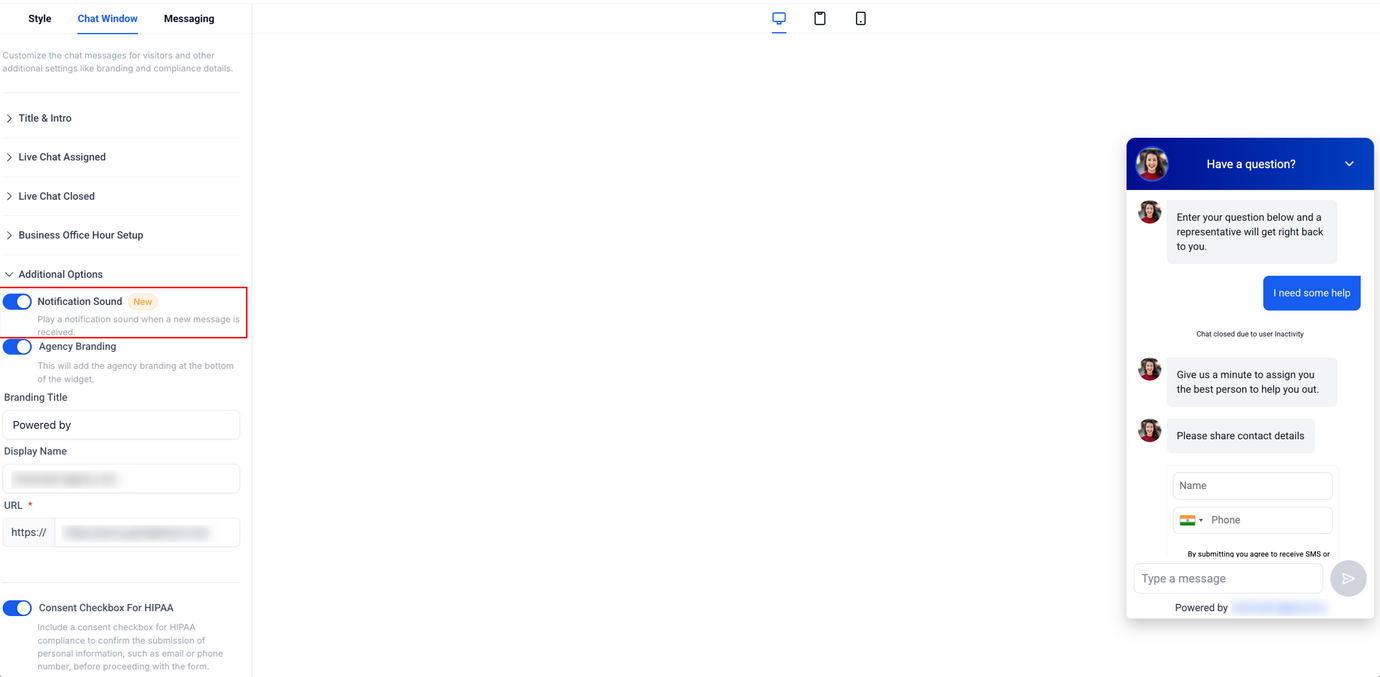The Notification Sound in the Chat Widget allows Mastermind users to manage how visitors are alerted to new messages. By offering a sound toggle option, it ensures a customizable communication experience that balances engagement and user comfort.