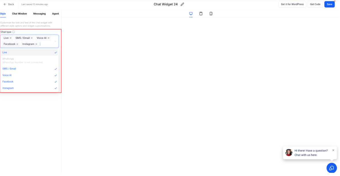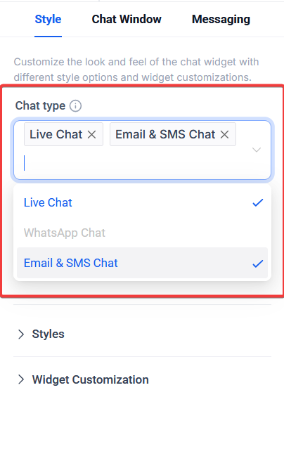- If you don’t have a WhatsApp number, you can still use the widget with just Live and Email Chat. WhatsApp will be hidden until a valid number is added.