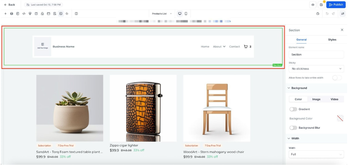 Select the section or element you want to anchor to. Ensure the section or element is highlighted.