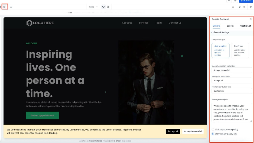 - Consistent Branding: Ensure the cookie consent banner aligns with your website's overall branding for a cohesive look.