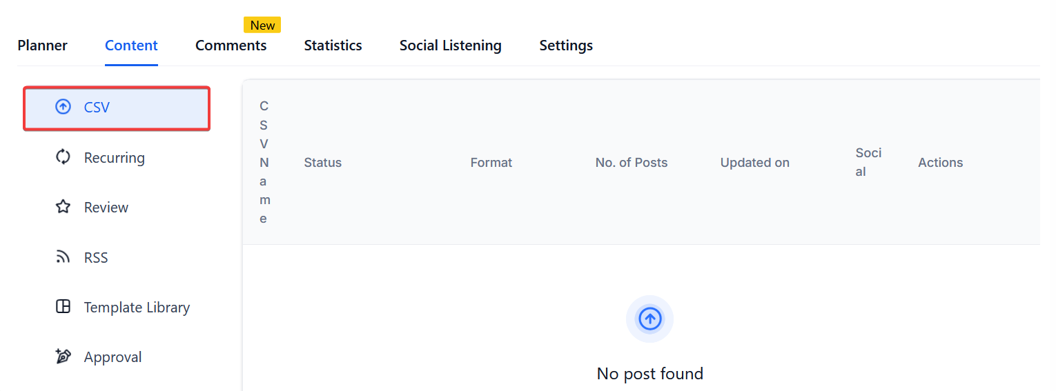 Step 2: Click on New Post in the right-hand corner then “Upload from CSV”