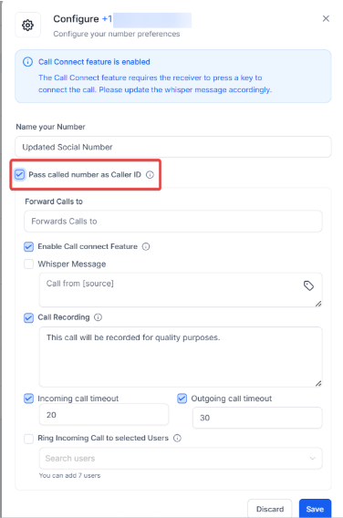 Answer: To identify the source of the call, go to Settings > Phone Numbers > Click the three dots next to the number and select "Edit configuration."