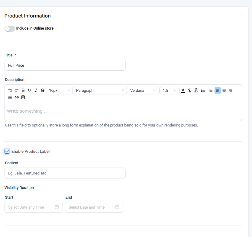 - Optionally, provide a custom display name for the product and set quantity limits if needed.