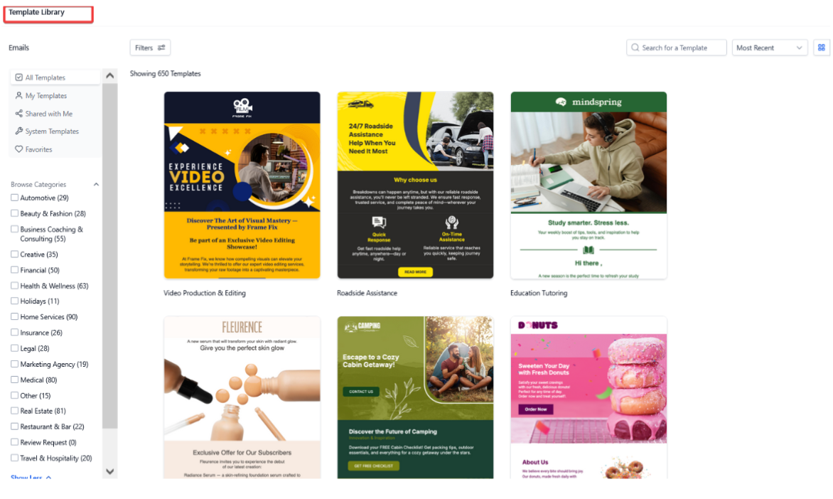 - Navigate to Marketing & Sales > Email & Social Media > Emails > Templates.