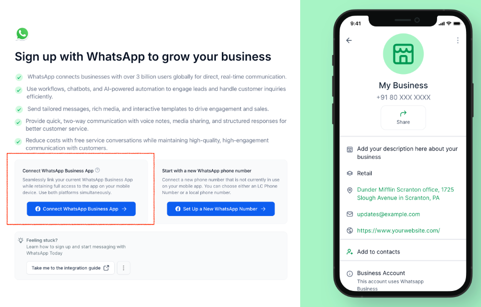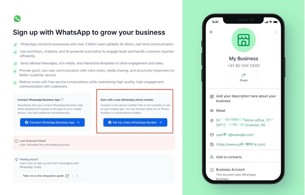- Integration Flexibility: Option to connect via new numbers or link existing WhatsApp Business accounts.