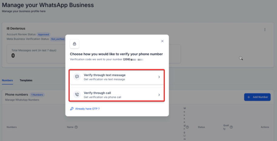 - Phone Call: Get a call on your forwarded number with the OTP.