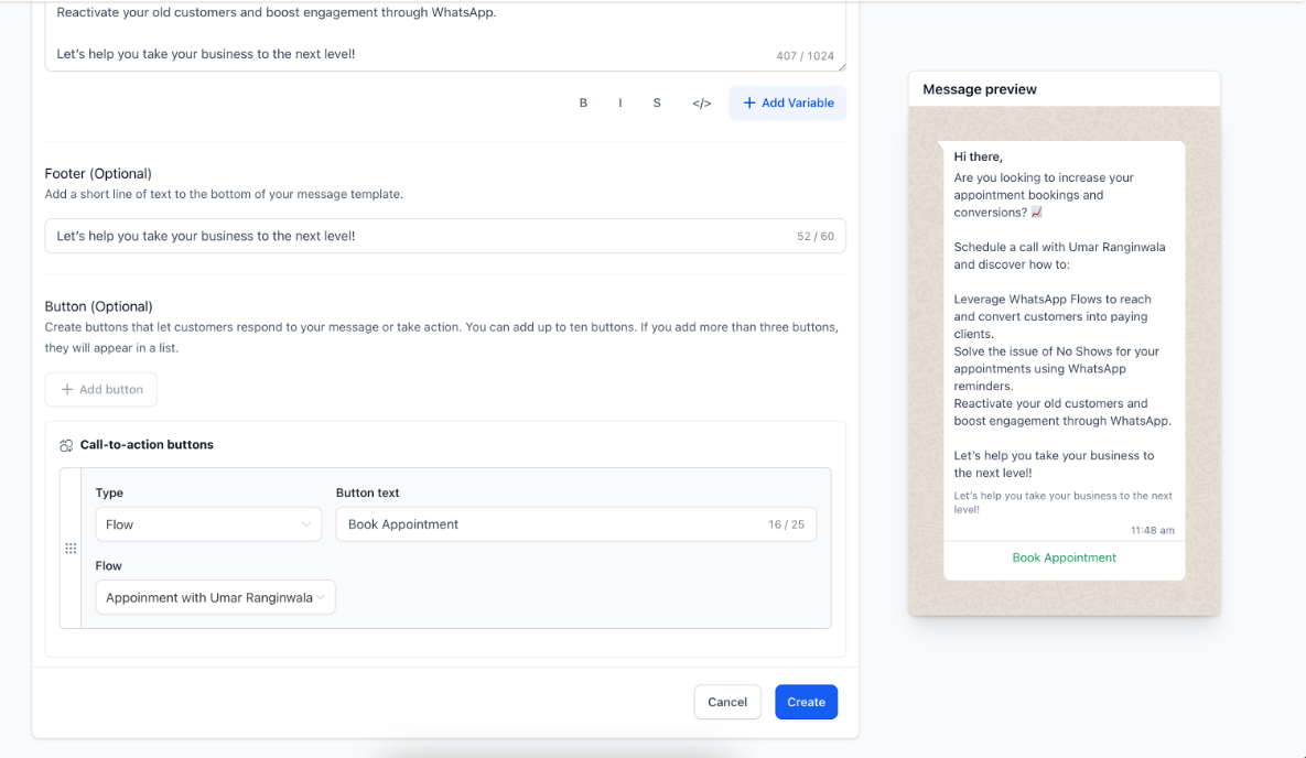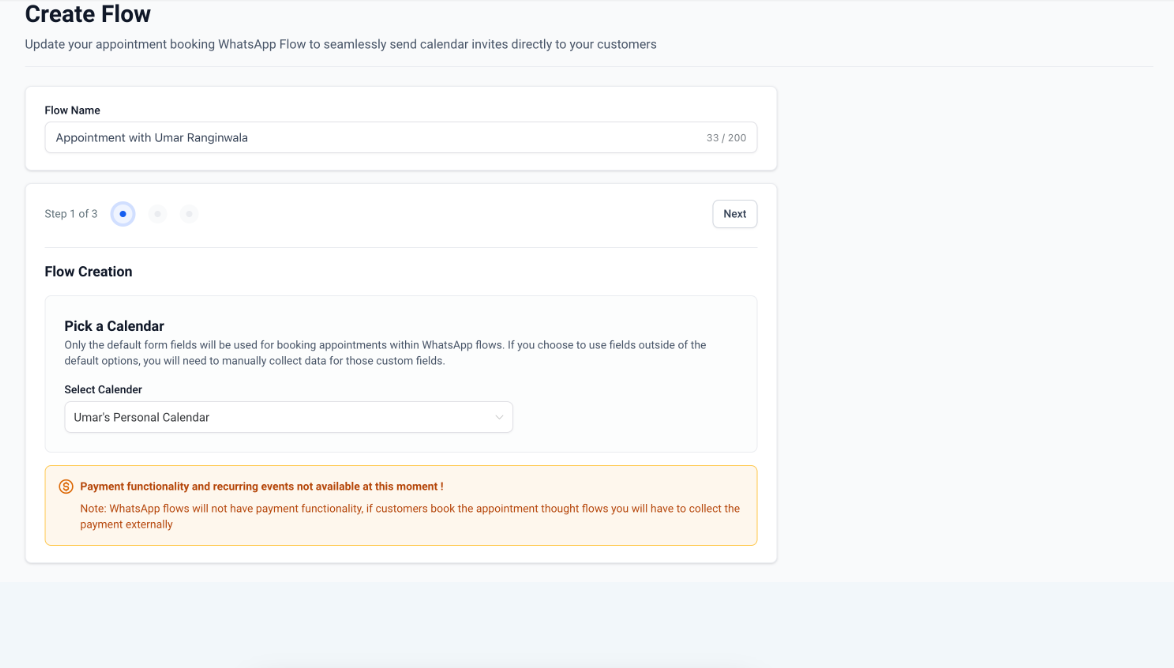 For more details and step by step guide, please review our article “WhatsApp Flows: In-app Appointment Booking”