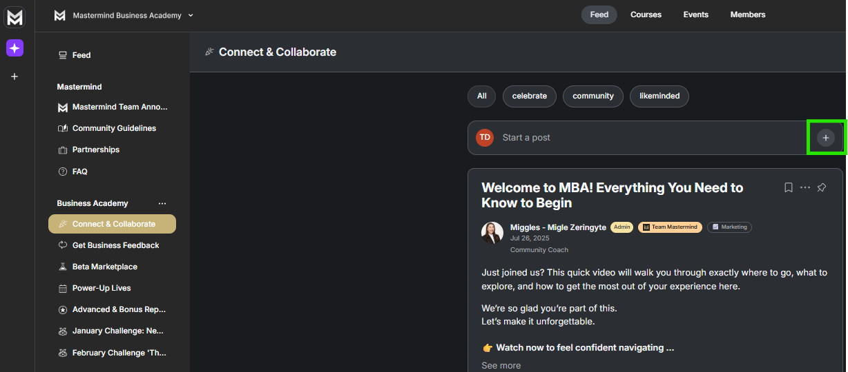 Mastermind Business Academy members can access the Connect & Collaborate section by: