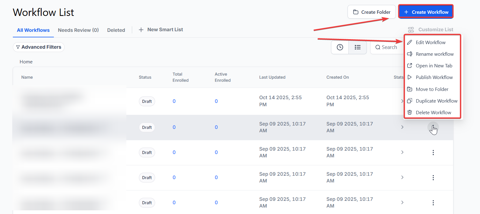 Triggers are events that automatically start a workflow when specific actions occur. Here’s how you can set them up: