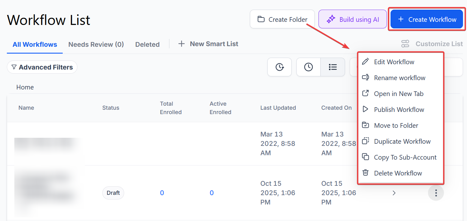 - Navigate to Tools & Reporting > Automations > Workflows and start a new workflow or edit an existing one.
