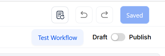 - Be sure to test your Workflow to make sure it is set up correctly using the Test Workflow button next to the Publish toggle switch.